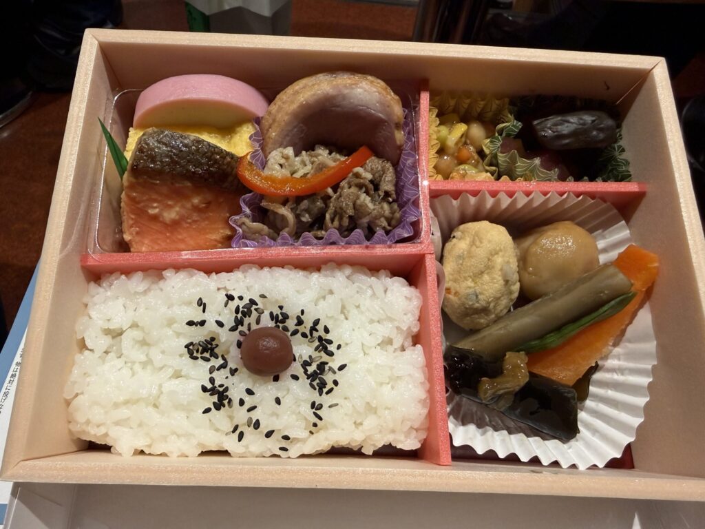 幕の内弁当、おかずがどれも美味しい。